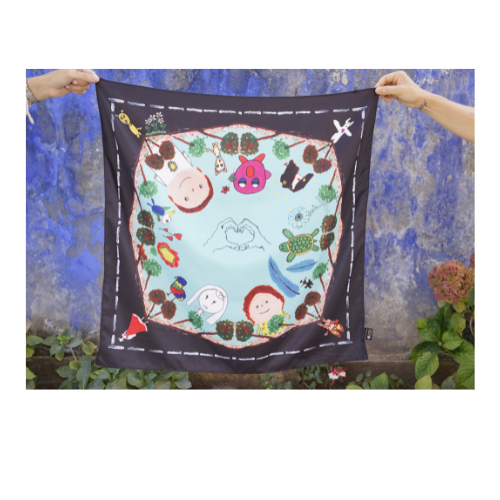 Uma peça única desenvolvida por um grupo de crianças e jovens em tratamento com o designar Filipe Faísca. O Lenço Caleidoscópio é muito mais do que um acessório de moda, é um símbolo de esperança que não vai deixar indiferente os seus colaboradores